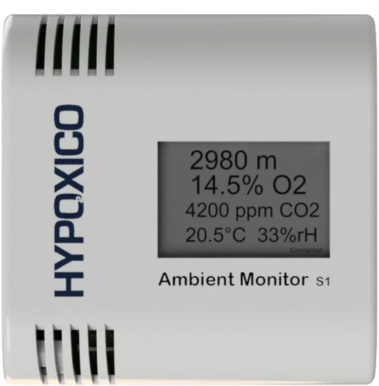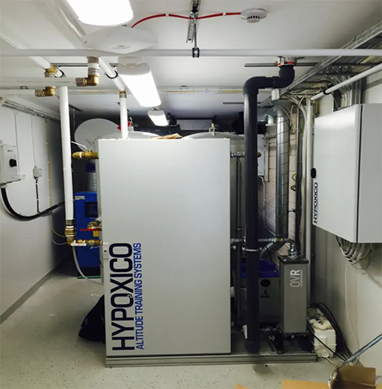 The Hypoxico system provides sterile hypoxic air for ventilation of the rooms and allows simulating altitude in any room individually according to training protocol. Every room has two monitoring systems that allows controlling oxygen and carbon dioxide levels and measuring temperature and humidity.