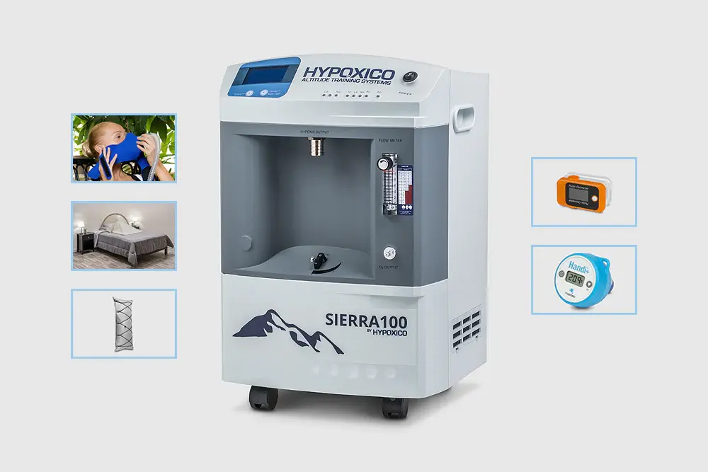 The Sierra 100 Sleep & Exercise Package gets you everything you need to experience the benefits from training at altitude at affordable price. This training package includes the Sierra 100 generator, Hypoxico exercise mask, Head Altitude Tent, grey tubing, HEPA Filter, Hypoxico breathing bag, and fingertip pulse oximeter.