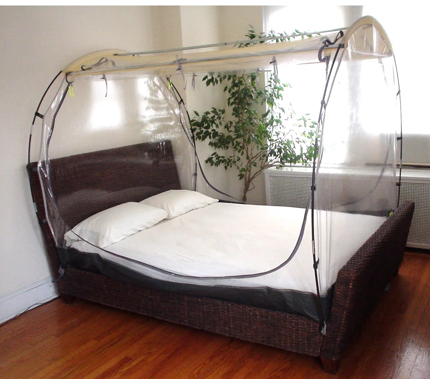 - Fits over standard queen size bed Composed of special grade nylon and 4 clear vinyl windows (153cm x 204cm x 150cm)